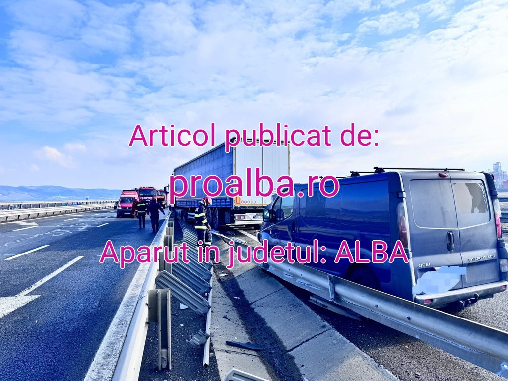 Detașamentul de pompieri Sebeș intervine, duminică, pentru asigurarea măsurilor specifice și prim ajutor medical, la un accident rutier produs pe autostrada A1, km 310, sensul de mers Orăștie-Sebeș. În accident sunt implicate un camion și o dubă. Ca urmare a evenimentului rutier, 5 persoane au fost evaluate medical, însă au refuzat transportul la spital, potrivit ISU Alba.