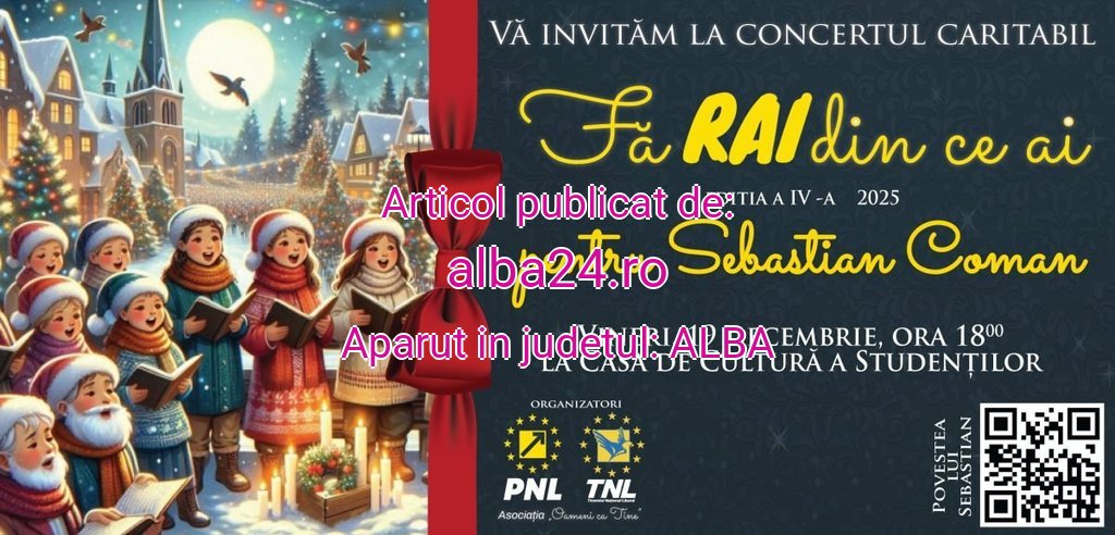 În apropierea sărbătorilor de iarnă, Alba Iulia devine, din nou, un loc al solidarității și al speranței. Vineri, 19 decembrie 2025, de la ora 18:00, la Casa de Cultură a Studenților, va avea loc ediția a IV-a a evenimentului caritabil „Fă RAI din ce ai”, un eveniment organizat pentru a sprijini lupta lui Sebastian Coman, un copil din comunitatea noastră care are nevoie de ajutorul tuturor.