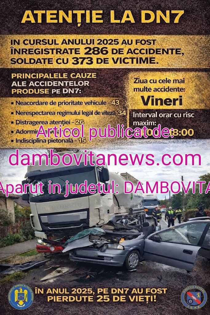 Polițiștii vor acționa pentru prevenirea și combaterea principalelor cauze ale accidentelor rutiere, respectiv neacordarea priorității vehiculelor care au acest drept, nerespectarea regimului legal de viteză, precum și distragerea atenției la volan.”, IPJ Dâmbovița.