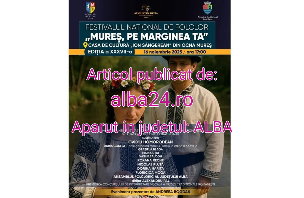 Manifestarea, ajunsă la ediția a XXXVII-a, se va desfășura la Casa de Cultură „Ion Sângereanu” din Ocna Mureș, duminică, 16 noiembrie 2025, începând cu ora 17:00.