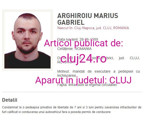 Marius Arghiroiu, bărbatul din Cluj, urmărit internațional pentru furt calificat și conducerea unui vehicul fără permis, a fost adus în România de polițiști, după ce a fost localizat în Olanda. Acesta are de executat o pedeapsă de peste 7 ani de închisoare.