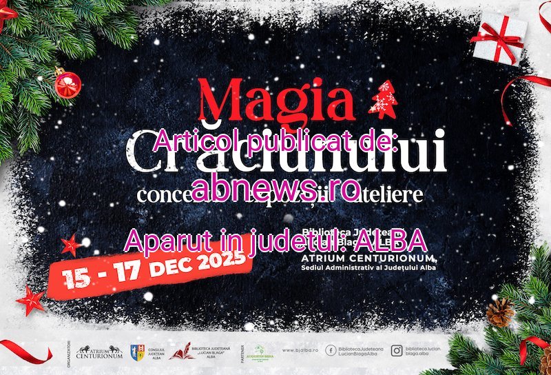 Consiliul Județean Alba și Biblioteca Județeană „Lucian Blaga” Alba vă invită în perioada 15-17 decembrie 2025, la evenimentul cultural intitulat „Magia Crăciunului”. Vor fi trei zile plină de culoare, muzică și lectură, atât la sediul bibliotecii organizatoare cât și la Atrium Centurionum de la sediul administrativ al județului Alba. Programul manifestărilor culturale este următorul: