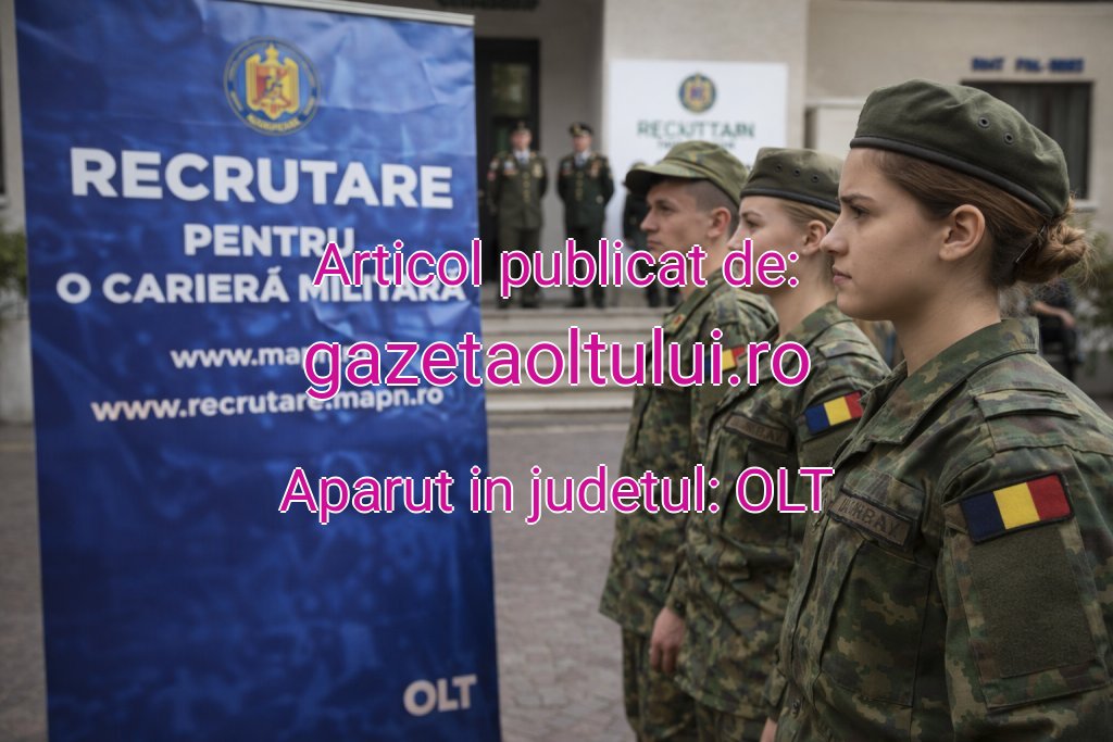 Ministerul Apărării Naționale a lansat campania de recrutare pentru tinerii din județul Olt interesați de o carieră militară, prin Biroul informare-recrutare din cadrul Centrului Militar Județean Olt. Oferta pentru anul de învățământ 2026–2027 vizează atât băieți, cât și fete, iar candidații pot opta pentru instituții de învățământ postliceal militar sau pentru unele programe universitare din sistemul de apărare. Datele oficiale publicate de MApN arată că sunt prevăzute 750 de locuri la școlile de maiștri militari, 634 de locuri la școlile de subofițeri și 100 de locuri în învățământul universitar de licență pentru formarea subofițerilor.