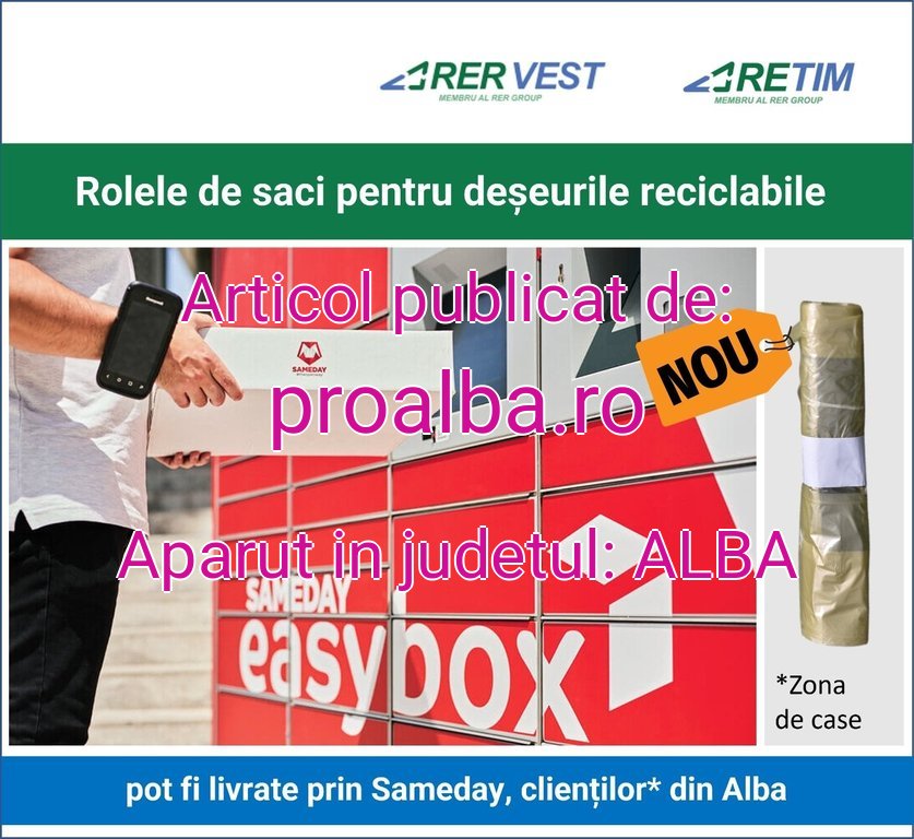 Asocierea RER Vest – RETIM anunță lansarea sistemului de livrare a rolelor de saci pentru deșeurile reciclabile direct la domiciliul clienților sau în easybox, în contul unui parteneriat cu firma de curierat Sameday.