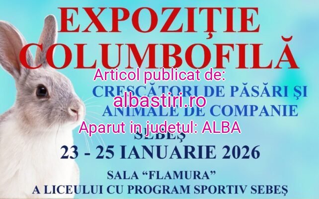 Primăria Municipiului Sebeş, în parteneriat cu Centrul Cultural „Lucian Blaga” şi cu Asociaţia crescătorilor „Mühlbach 2008” organizează, în perioada 23-25 ianuarie 2026, o nouă ediţie a Expoziţiei de porumbei voiajori, de ornament, păsări şi animale de companie.