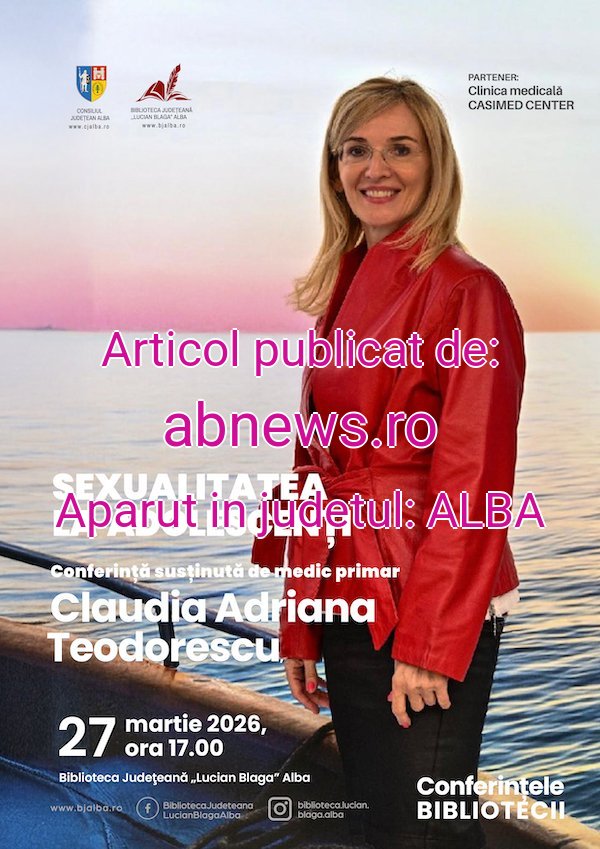 Vineri, 27 martie 2026, toți cei interesați sunt invitați să participe la conferința cu titlul „Sexualitatea la adolescenți”. Evenimentul va avea loc de la ora 17:00, la sala de lectură a Bibliotecii Județene „Lucian Blaga” Alba și va aborda o temă dedicată înțelegerii unei etape esențiale din dezvoltarea tinerilor.