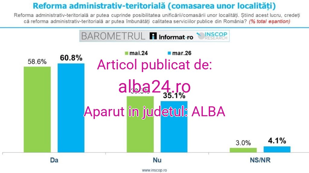 Aproape 60% dintre români cred că reforma administrativ-teritorială, adică reorganizarea administrativă a țării, ar îmbunătăți calitatea serviciilor publice din România, arată datele unui sondaj INSCOP Research.