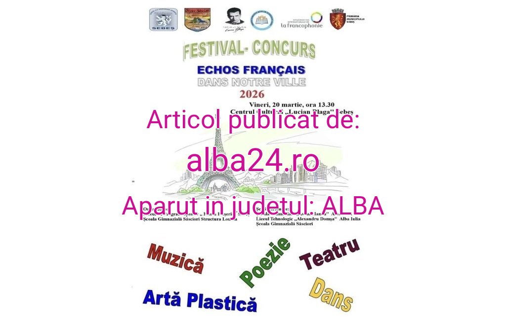 Concursul „Echos français dans notre ville” va avea loc mâine, 20 martie, pe scena Centrului Cultural „Lucian Blaga” din Sebeș. Acesta va aduce împreună elevi, profesori și comunitatea locală pentru a celebra farmecul limbii franceze și bogăția culturii francofone. Inspirat de pasiunea copiilor pentru artă, muzică și teatru, proiectul propune o întâlnire vie între limbă și expresie artistică, într-un cadru modern și deschis colaborării.